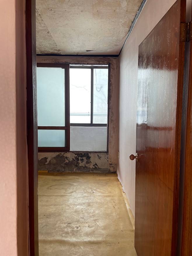 현관 출입문을 막고 가벽을 세우기 전 아이 방이 있는 위치에요.