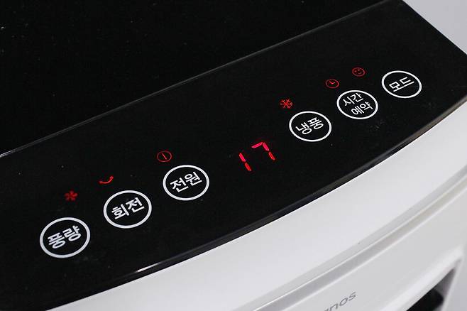 각 버튼의 기능은 버튼 위에 붉은색 LED로 표시되며, 풍량은 3단으로 조절할 수 있다. 또한 모드는 일반풍과 자연풍, 수면풍 세 가지를 선택할 수 있는데, 스마일 마크와 나뭇잎 이미지, 달 이미지로 구분해준다. 양쪽 버튼의 가운데에는 현재 실내 온도가 표시된다.