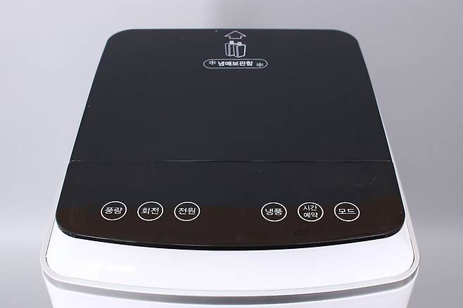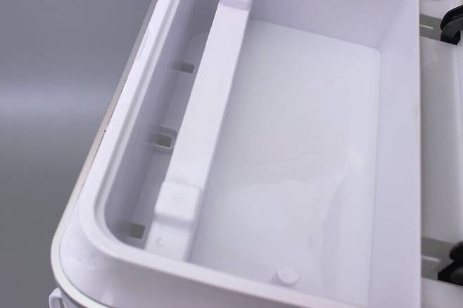 조작부 뒷부분은 냉매 보관함으로, 힌지가 적용되어 있어서 위로 열면 보관함이 노출된다.