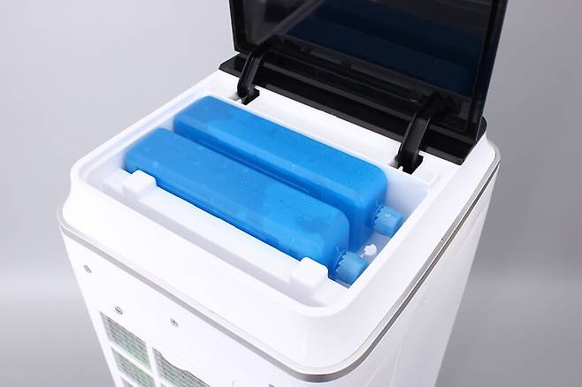 냉동실에서 얼린 냉매팩을 냉매 보관함에 넣고 작동시키면 끌어 올려진 물이 냉매팩에 접촉하면서 차가워지고, 차가워진 물이 워터 필터를 타고 흐르면서 더 시원한 바람이 배출되는 구조이다. 더욱 시원한 바람을 원한다면 냉매팩을 냉매 보관함과 물탱크에 나눠 넣거나 한쪽에 얼음을 넣어주면 된다.