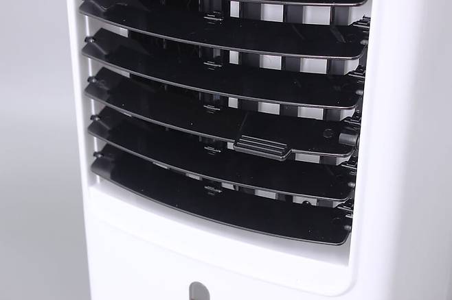 리모컨 수신부 아래에는 바람이 나오는 송풍구가 있고, 송풍구 앞에는 바람의 방향을 조절하는 날개가 위치해 있다. 좌우 방향을 조절하는 세로 날개는 안쪽에 있으며, 상하 방향을 조절하는 가로 날개가 가장 바깥쪽에 자리 잡고 있다.