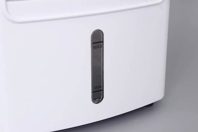 전면부의 가장 아래쪽에는 세로로 된 타원형의 투명창이 있는데, 바로 물탱크의 수위 표시창이다. 표시창 위쪽과 아래쪽에는 MAX와 MIN 라인과 글자가 그려져 있다.