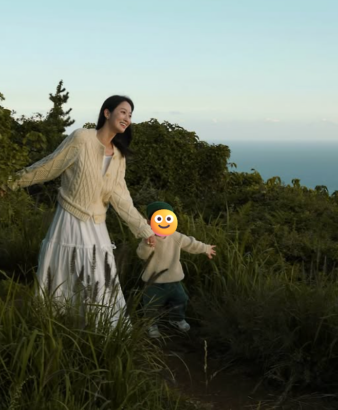 전혜빈 님은 가족들과 함께 찍은 사진을 공개했는데요~이날 라이트한 노란색 꽈배기 니트 가디건에 화이트 롱원피스로 페미닌 한 무드를 보여줬어요. 아이와 남편과 너무 행복해 보이더라고요~