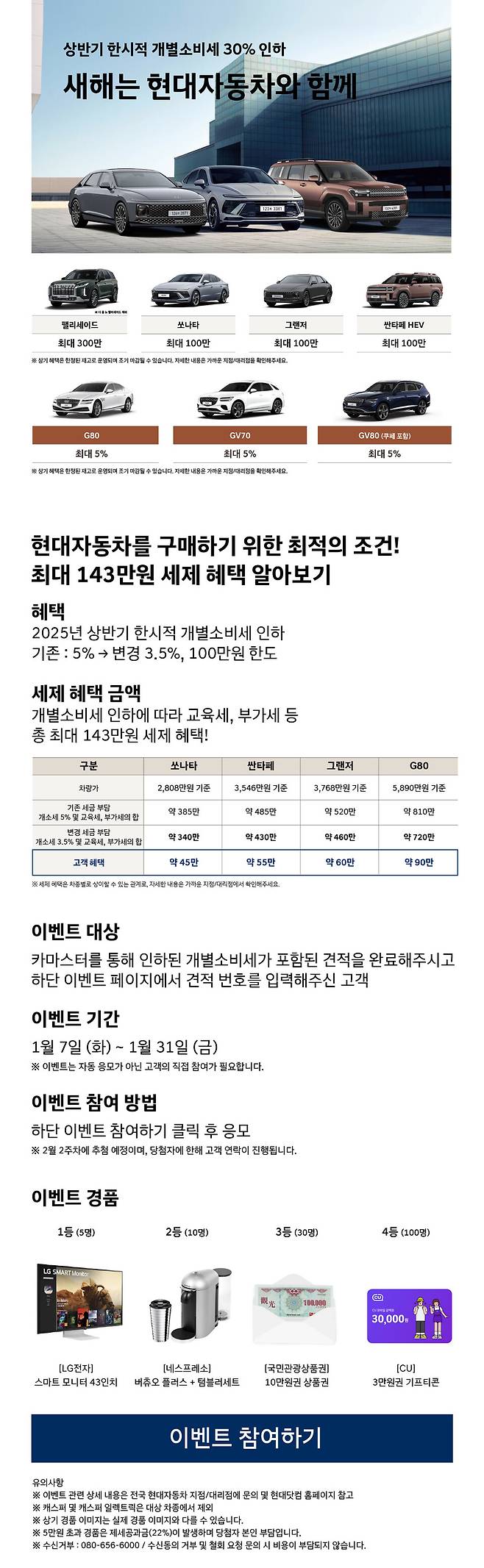 또 프리미엄 브랜드인 제네시스도 G80과 GV70, GV80, GV80 쿠페 등 주요 차종에 대해 최대 5%를 할인 판매한다.