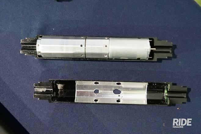 플렉스기어로 잘 알려진 모터사이클 랜딩기어 전문 제조사 GLK가 싱글모터 방식을 적용한 플렉스윙을 선보이고 본격적인 판매에 나선다. GLK는 지난 6월 본사에서 제품 발표와 시연회를 진행했지만 그 이후로도 본격적인 판매는 진행하지 않았는데 제품의 완성도에 만족하지 못한 김몽룡 대표가 이후에도 계속 플렉스윙의 완성도를 끌어올리는 작업을 계속해왔기 때문이었다. 발표회를 진행하고 나서 어느덧 4달여가 지난 지금 플렉스윙은 발표회에서 보여준 모습과는 완전히 다른 모습으로 재탄생해 그 동안 얼마나 많은 개선이 있었는지를 결과물로서 보여줬다. 특히 용접 방식으로 제작되어 왔던 날개 부분이 금속사출 방식으로 변경되면서 강성은 높이면서 보다 깔끔하고 완성도가 높은 방식으로 변경됐다. 금속사출 제조방식은 결국 플렉스윙이 넘어야 할 마지막 관문인 대량 생산에 적합한 방식으로 손쉽게 대량 생산이 가능하면서 단가를 낮출 수 있는 방법이기도 하다. 완성도 역시 높아질 수밖에 없는데 외형적으로도 가장 깔끔하고 보기 좋은 모습을 만들어 낼 수 있는 제조 방식이다.