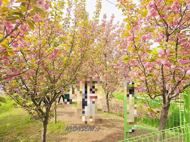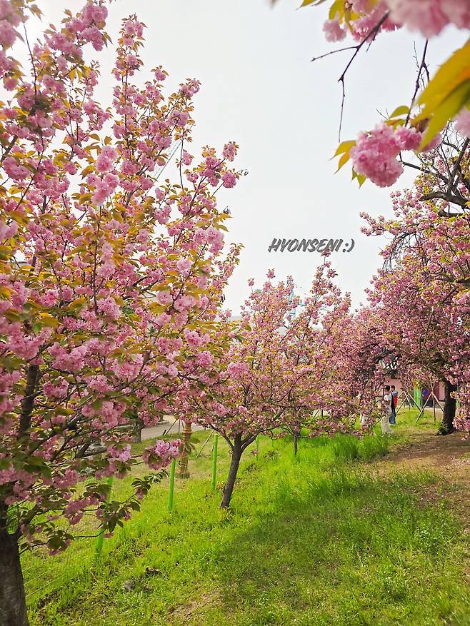 겹벚꽃 터널이에요.