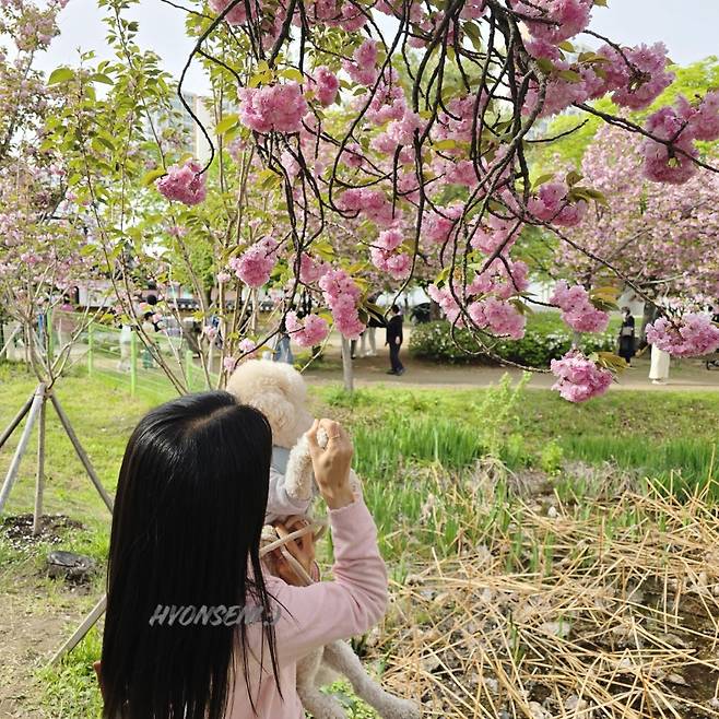 겹벚꽃과 망고랑 사진을 남겨보았어요.