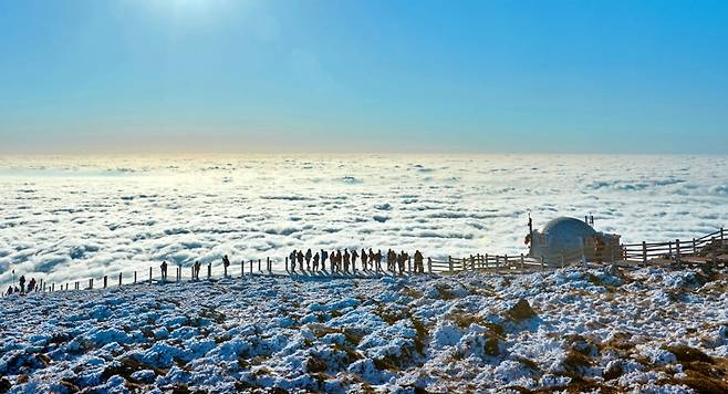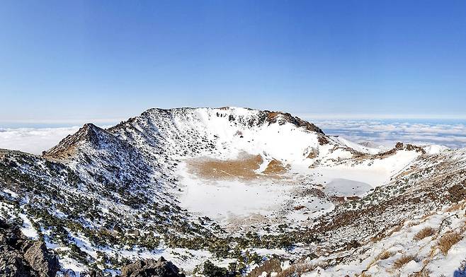 겨울철 백록담은 전혀 다른 풍경을 보여준다. 눈이 쌓이면 분화구 전체가 하얗게 덮이며, ‘녹담만설’이라 불리는 장관이 펼쳐진다. 한겨울에 쌓인 눈이 여름까지 남아 있을 정도로 기온과 환경이 엄격해, 날씨가 허락한 날에만 그 모습을 드러낸다. 그래서 백록담의 설경은 더욱 귀하고 강렬하다.