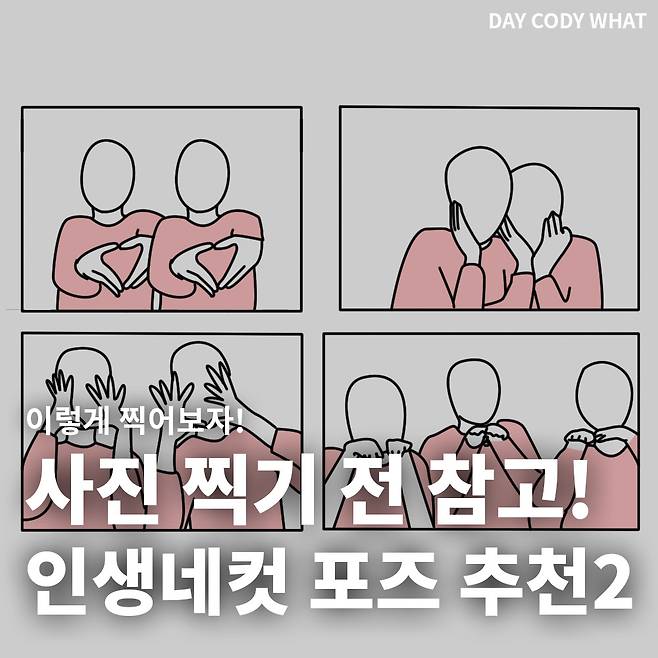 1편에 이어, 두번째 편인 2편에는 또 다른 인생네컷 포즈들을 한번 공유드려볼게요!😉