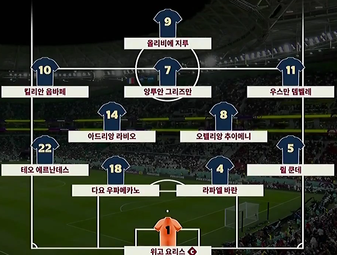 하지만 분명히 프랑스 수비진은 16강 폴란드 전을 포함해서 후방 빌드업 과정에서 잉글랜드 수비진보다 상당히 불안한 모습을 자주 노출하면서 많은 위기를 맞이했던 만큼 전방 압박이 매우 강한 잉글랜드를 상대로는 이 부분이 반드시 개선될 필요가 있다.
