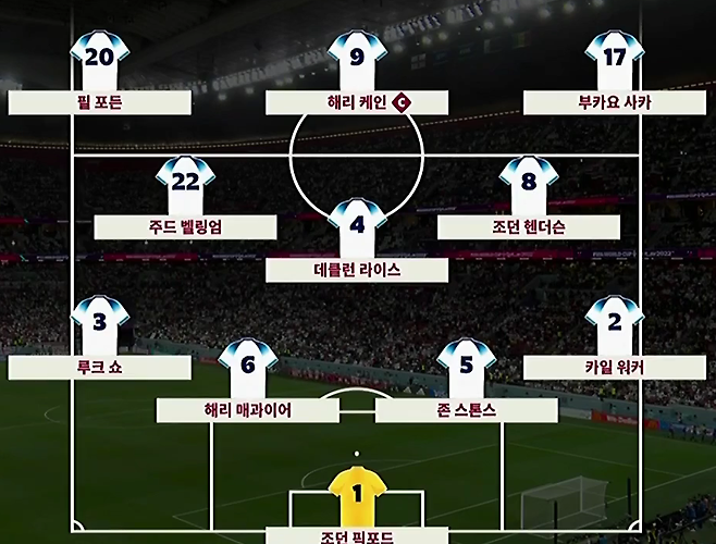 주전 선수들이 나선다는 가정하에 경기 중에도 4-2-3-1과 4-3-3 때로는 4-1-3-2에 가까운 전형을 보여주는 등 굉장히 유동적으로 움직이는 프랑스와 달리 잉글랜드는 선발로 어떤 선수가 나서느냐에 따라서 4-2-3-1 혹은 4-3-3 포메이션으로서의 구분이 상대적으로 강하게 이루어지는데 상대인 프랑스가 2선 공격형 미드필더의 공간을 커버하는 수비형 미드필더가 존재하고 최대 두 명까지도 배치될 수 있는 만큼 구도상 존재감을 발휘하기 쉽지 않은 마운트를 출전시키기보다는 헨더슨이 선발로 나서면서 최근 좋은 경기력을 보여줬던 벨링엄에게 좀 더 편한 환경을 제공할 가능성이 높다고 생각된다.