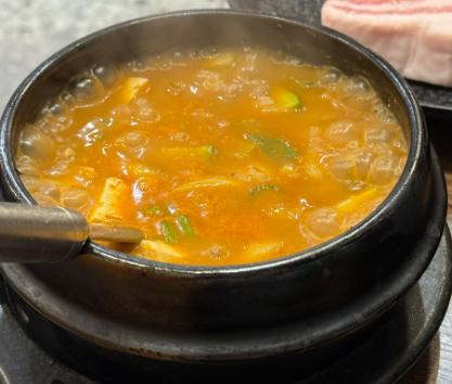 이곳 고기는 국내산 숙성 암퇘지만 사용해 고소하고 촉촉한 식감이 특징이에요.소금, 쌈장도 좋지만, 제주산 꽃멸치젓갈 소스에 찍어 먹으면 풍미가 확 살아나요!
