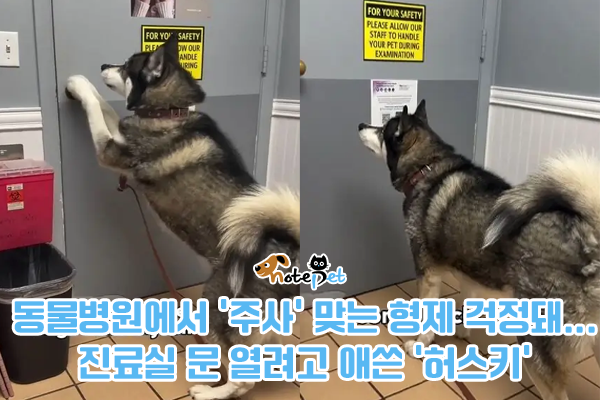 동물병원에서 주사 맞는 형제를 걱정하는 허스키의 모습이 눈길을 끌었습니다.