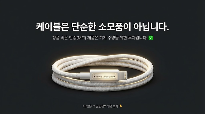 아이폰에는 과전압을 막는 보호 장치가 있습니다. 하지만 저가 케이블에서 반복되는 전력 불안정과 발열까지 해결해 주지는 못합니다. 충전이 된다는 사실보다 중요한 건, 충전 과정이 얼마나 안정적인지입니다. 아이폰을 오래 쓰고 싶다면 충전기나 배터리를 의심하기 전에, 같은 환경에서 케이블만 바꿔서 발열·속도·끊김이 달라지는지부터 확인해 보는 것이 좋습니다.