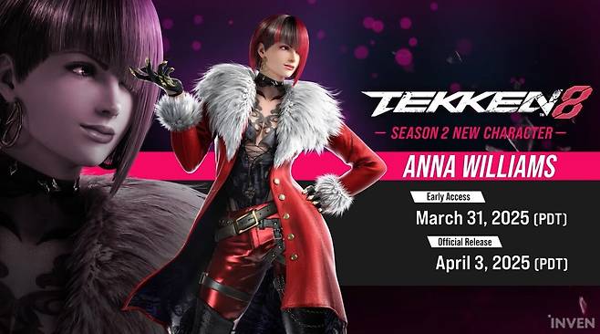 한편 이날 스페셜 방송에는 새롭게 안나 윌리엄스가 공개됐다. 안나는 시즌2 캐릭터 패스 구매자를 대상으로 3월 31일 배포될 예정이며 4월 3일부터는 모든 이용자가 개별 구매할 수 있게 된다.