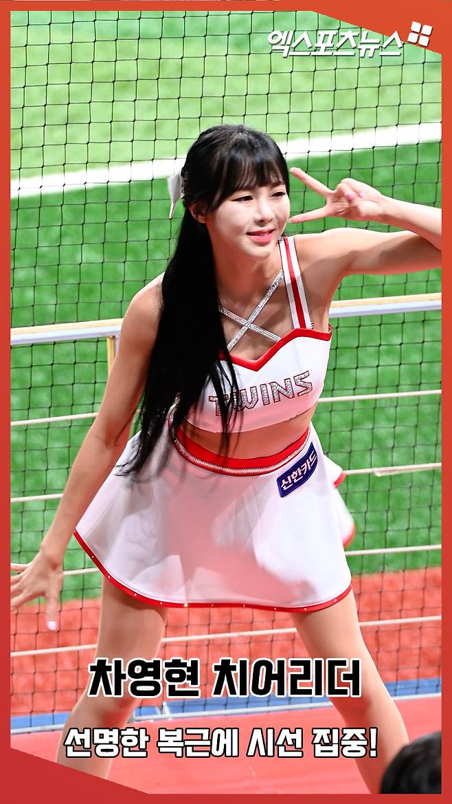 (엑스포츠뉴스 고척, 김한준 기자) 2일 오후 서울 구로구 고척스카이돔에서 열린 '2024 신한 SOL Bank KBO리그' LG 트윈스와 키움 히어로즈의 경기, LG 차영현 치어리더가 멋진 공연을 선보이고 있다.