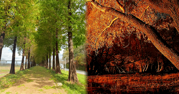 공주에는 잘 알려지지 않은 아름다운 메타세쿼이아길이 숨어 있는데요. 도시 외곽의 조용한 농로를 따라 메타세쿼이아 나무들이 줄지어 서 있어, 마치 유럽 시골 마을을 걷는 듯한 이국적인 분위기를 자아냅니다. 가을이면 잎이 붉게 물들기 시작해, 10월 중순부터는 황토색과 붉은빛이 섞인 은은한 풍경이 펼쳐지는데요.