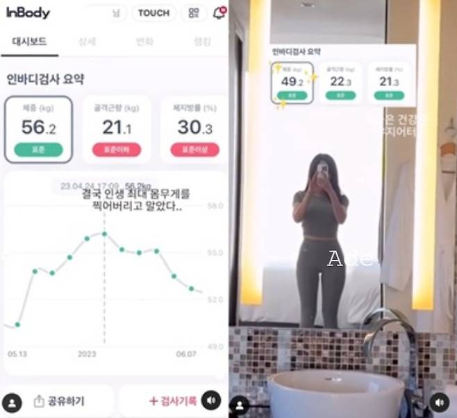 약 2년 전, 효민은 먹고 마시는 걸 너무 좋아해서 인생 최고 몸무게를 찍었다고 고백했는데요. 😱 당시 체중이 56kg, 체지방률이 30%대까지 올라갔었다고 해요. 😭 하지만 꾸준한 다이어트와 식단 조절, 운동을 병행하며 49kg, 체지방률 21%까지 감량에 성공! 💪 다이어트 성공 후 인증샷을 올려 팬들에게 놀라움을 안겨줬었죠! 😲