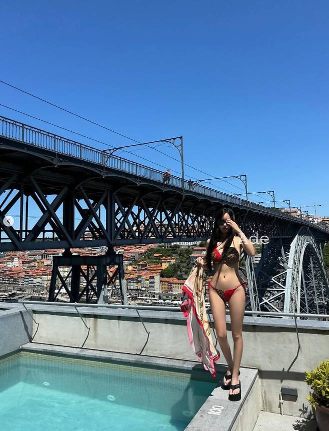 인스타그램에 올라온 효민의 비키니 사진들은 진짜… 🙊 해외 리조트 풀을 배경으로 레드, 호피, 골드 포인트가 들어간 화려한 비키니를 찰떡같이 소화했더라구요! 😍 강렬한 비키니도 효민의 볼륨감 넘치는 바스트, 군살 하나 없는 바디, 슬림한 허리, 쭉 뻗은 각선미 앞에서는 그저 배경일 뿐… ✨ 비율이 진짜 갓벽! 👍