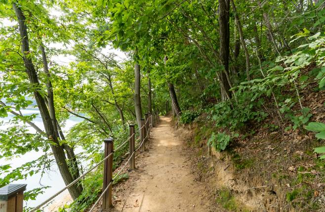 찐한 감성을 느꼈다면 이제는 몸을 움직일 차례다. 횡성호수길은 그 이름처럼 호수를 따라 조성된 둘레길로, 흙길로 되어 있어 무릎에 무리가 없고 걷기에 편안하다. 자연을 느끼며 걷는 데 집중하고 싶은 사람이라면 꼭 추천하고 싶은 코스다.