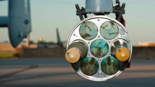 APKWS II는 레이저 유도 방식으로 개발된 유도 로켓이라 레이저 포드로 목표물을 조준해 줘야 합니다.