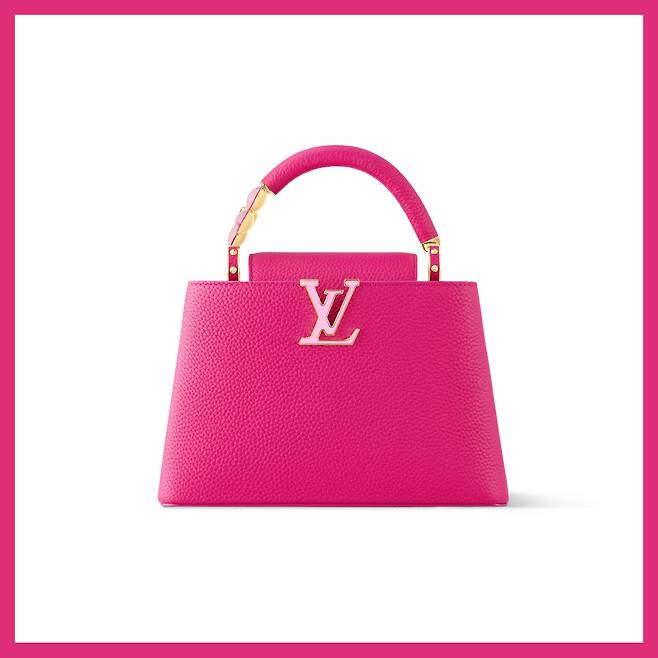 생기 넘치는 핑크 컬러의 토뤼옹 가죽으로 경쾌함을 자아내는 디자인을 담은 백입니다. 세련되고 메탈릭한 포인트를 더한 반짝이는 골드 하드웨어와 일본 예술가 무라카미 다카시의 상징적인 스타일이자 부활을 상징하는 체리 블로썸 디테일로 장식한 핸들이 가장 큰 특징입니다.