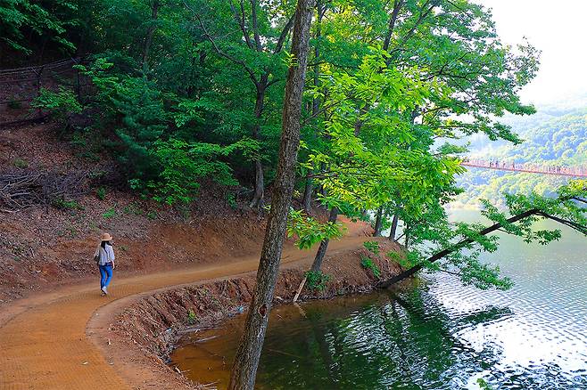 출렁다리를 건넌 후에는 마장호수를 한 바퀴 도는 둘레길이 이어진다. 잘 정비된 산책로는 울창한 숲을 따라 이어지며 사계절 내내 각기 다른 풍경을 자아낸다.