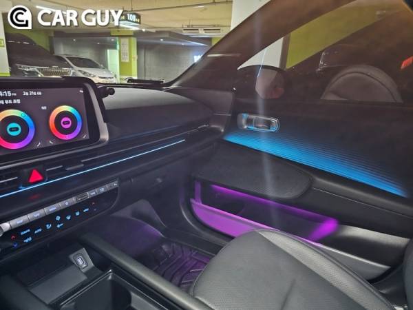 실내 소재는 6000만원대의 출고가를 생각하면 평이한 수준이다. 아니 내연기관 차량인 그랜저와 비교한다면 오히려 고급감이 부족하다. 엠비언트 라이트는 듀얼 컬러를 지원해 실내 분위기는 그나마 나은 편이다.