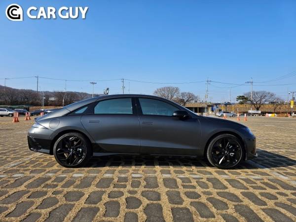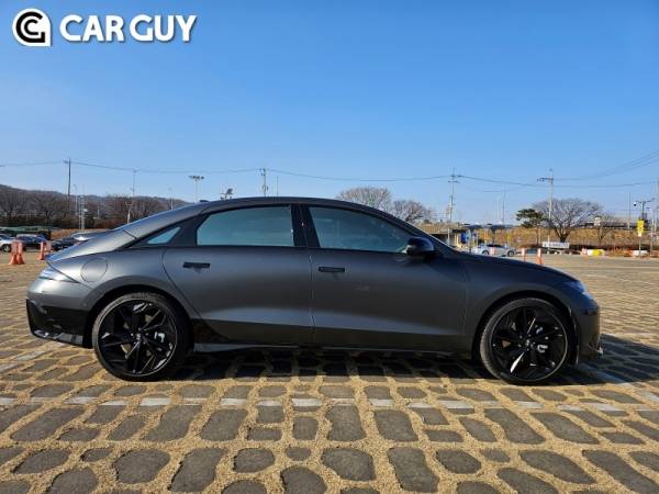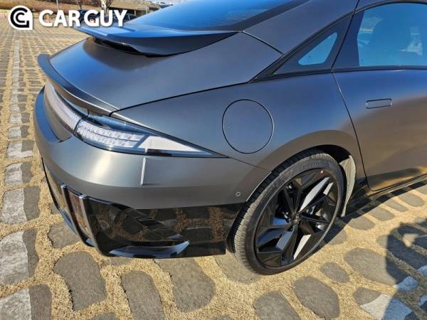 전기차는 하부에 위치한 배터리 때문에 동급 내연차량 대비 전고가 높은 경우가 일반적이다. 아이오닉6는 날씬한 측면 라인을 보여주기 위한 디자인 요소로 차체 하단부를 차체 색상과 대비되는 컬러를 적용했다.
