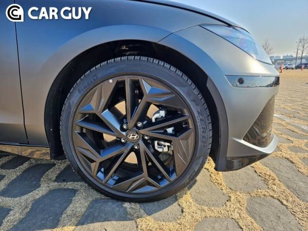 블랙 에디션 모델은 블랙 매트 색상의 20인치 휠이 기본이다. 245mm의 넓은 폭과 편평비 40의 얇은 사이드 월을 가진 타이어를 장착하고 있어 승차감에서 불리한 것도 사실이지만 아이오닉6 서스펜션은 노면 충격을 제대로 걸러줘 승차감이 좋은 편이다.