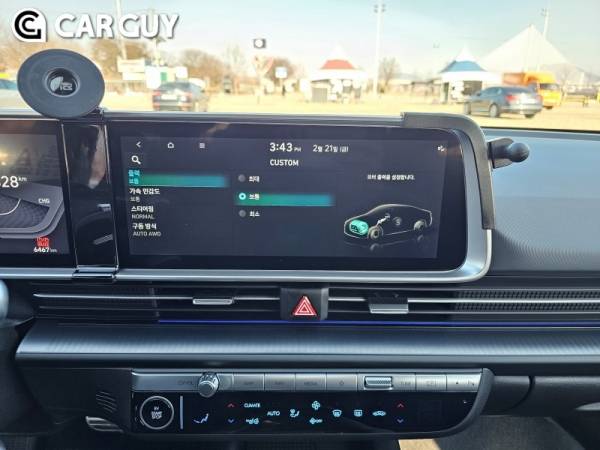 아이오닉5 대비 장점은 EV 성능 튠업 기능이다. 노멀, 스포츠로 선택이 가능한 브레이크 선택 모드는 두 모델에 모두 적용이 되어 있다. 하지만 출력, 가속 민감도, 스티어링 휠 감도 등의 세부 선택은 아이오닉6에서만 가능하다. (아이오닉5N 제외)