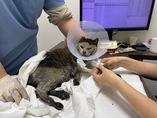 경북 지역에 발생한 대형 산불 현장에서 임신한 몸으로 전신 화상을 입고 가까스로 구조된 고양이의 사연이 알려져 안타까움을 자아내고 있습니다.