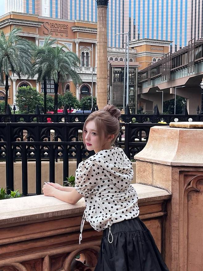 트리플에스 연지가 마카오 여행 중 찍은 인스타그램 사진이 화제를 모으고 있다. 마카오 특유의 이국적인 건축물과 야자수 풍경을 배경으로 선 연지는 청순하면서도 사랑스러운 매력을 발산했다. 이번 착장은 도트 패턴의 후드 집업과 블랙 롱스커트의 조합으로, 여행지에서도 자연스럽게 어울리는 데일리 패션을 선보였다.