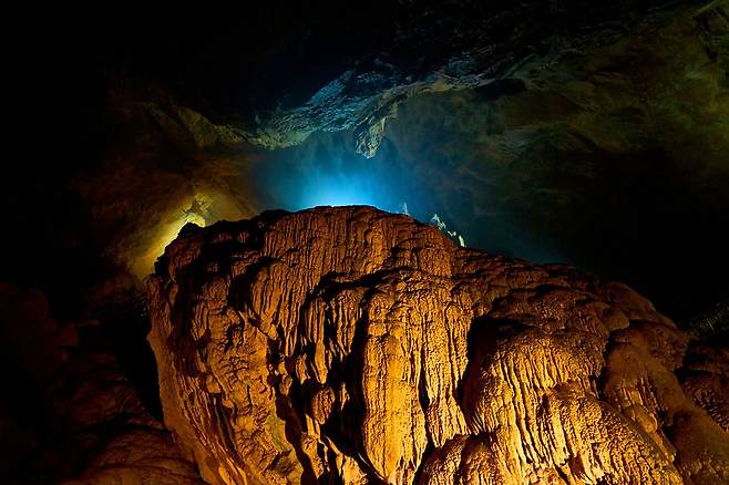환선굴(대이리 동굴지대)은 등산을 좋아하는 이들에게 매우 흥미진진한 곳입니다. 이곳은 종유석과 석순을 특징으로 하는 광대한 동굴을 가지고 있습니다. 암석층은 수천 년 동안 형성된 종유석/석순의 모양을 하고 있습니다.