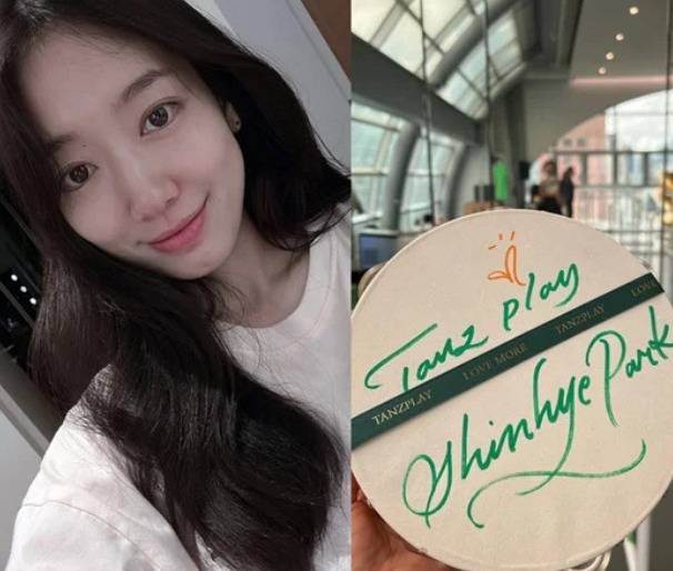 공개된 사진에는 초록색 캘리그래피가 인상적인 탬버린이 담겼다. 탬버린에는 박신혜의 이름과 함께 '탄츠플레이'라고 적혀있어 눈길을 끈다.