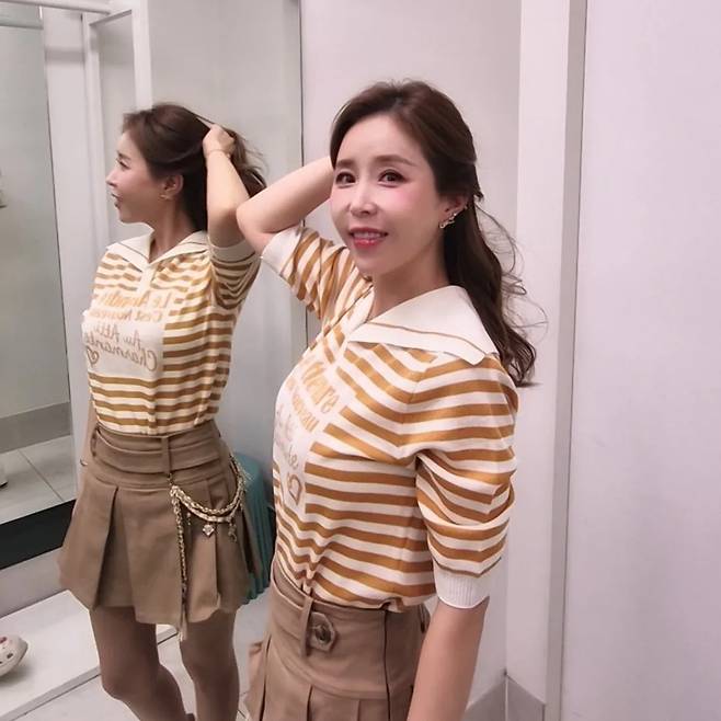 단정하면서도 경쾌한 '프레피 룩'은 그녀의 사랑스러운 매력을 극대화하며, '연하 남편'의 마음을 사로잡기에 충분해 보인다.