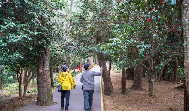 그중에서도 약 3,000그루의 동백나무 군락이 섬 전체를 덮고 있어, 10월부터 꽃망울이 맺히기 시작해 이르면 12월, 늦게는 3월까지 붉은 꽃이 이어진다.