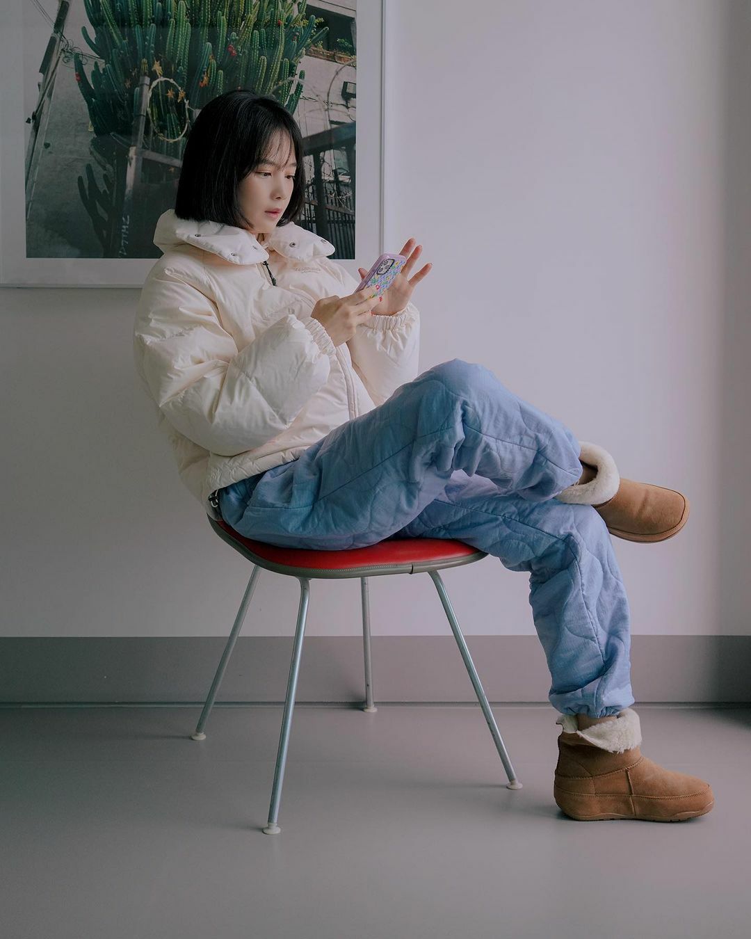 하늘색 누빔팬츠와 어그부츠로 따뜻함까지 겸비한