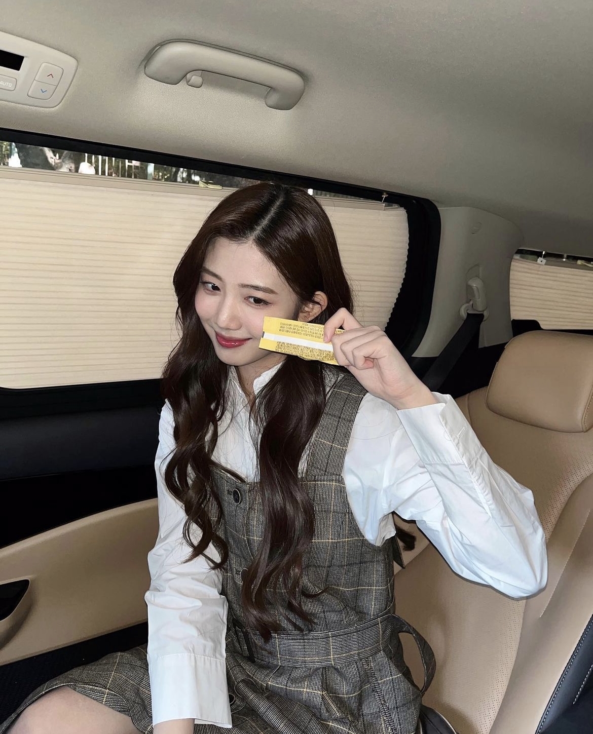 체리블렛 유주의 "코벳블랑" 체크원피스룩은