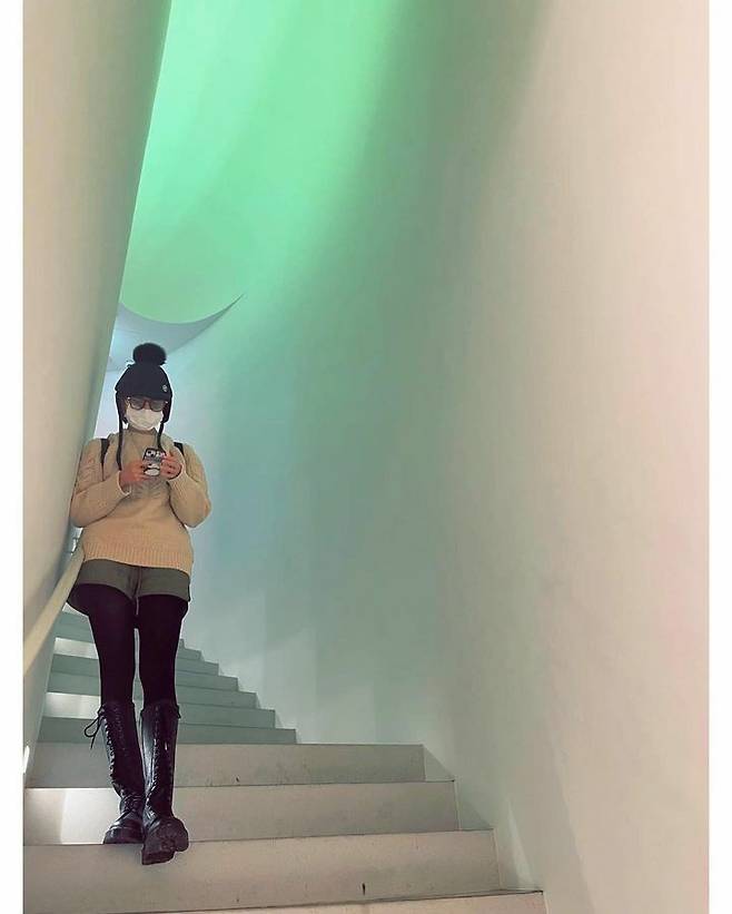 미니 스커트와 어그부츠로 사랑스러운 겨울 코디를 보여주었는데요