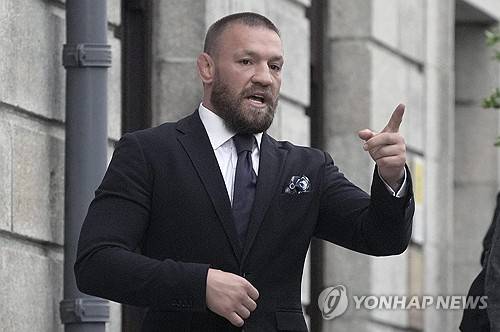 Conor McGregor gestures as he leaves the High Court in Dublin, Ireland Wednesday, Nov. 6, 2024. (Brian Lawless/PA via AP) UNITED KINGDOM OUT; NO SALES; NO ARCHIVE; PHOTOGRAPH MAY NOT BE STORED OR USED FOR MORE THAN 14 DAYS AFTER THE DAY OF TRANSMISSION; MANDATORY CREDIT