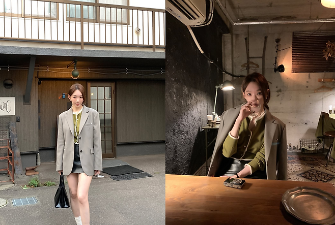 여기에 블랙 미니스커트를 매치해 아찔한 ‘하의 실종’ 패션을 완성하며 모두를 놀라게 했다. 이너로는 올리브 그린 컬러의 가디건을 매치해 그녀의 패션 센스가 돋보이고 있는 중이다.