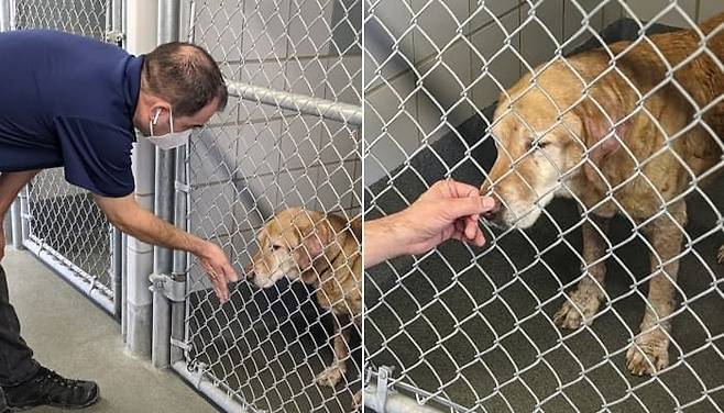 남자는 보호소 전화를 받자마자 한걸음에 달려왔고 조심스럽게 철장에 갇힌 자신의 반려견에게 냄새를 맡게 했네요