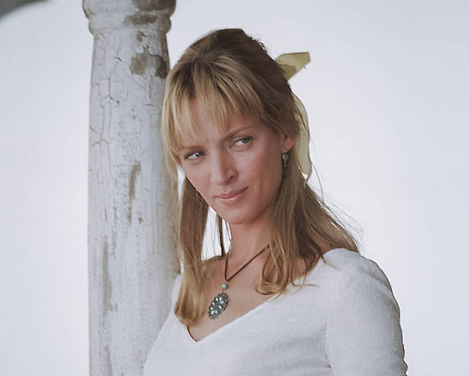 '펄프 픽션'에 이어 '킬 빌'로 두 번째로 호흡을 맞춘 쿠엔틴 타란티노 감독과 배우 우마 서먼. '펄프 픽션' 촬영 당시 여자가 주인공인 복수극에 대한 아이디어를 공유한 것이 이 이야기의 시초가 되었다고