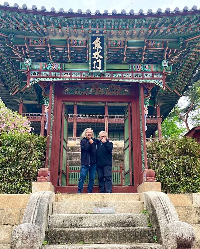 또 다른 방문지인 서울 종로구 창덕궁에서는 '인자한 할아버지' 그 자체의 모습을 보였다. 마침 푸른 새싹과 꽃이 만발한 고궁의 정취를 눈 앞에서 확인한 감독은 손으로 하트 포즈를 취하고 기념 사진을 찍었다.