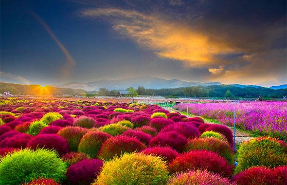 특히 저녁 무렵이 되면 꽃밭 위로 해가 지며 붉은 빛이 물들어, 낮과는 또 다른 분위기의 낭만을 만날 수 있습니다.