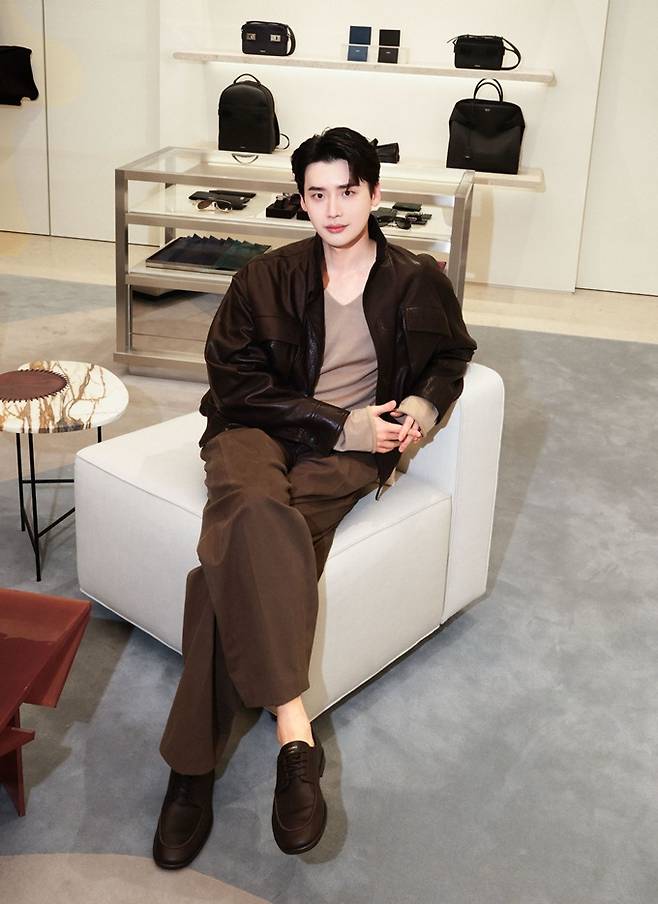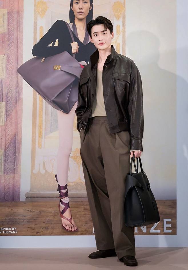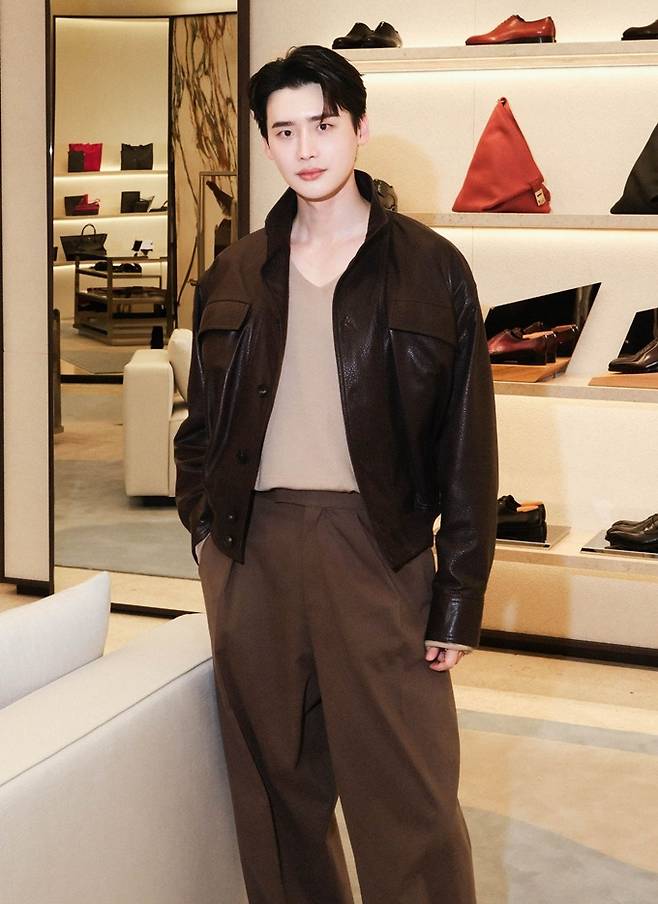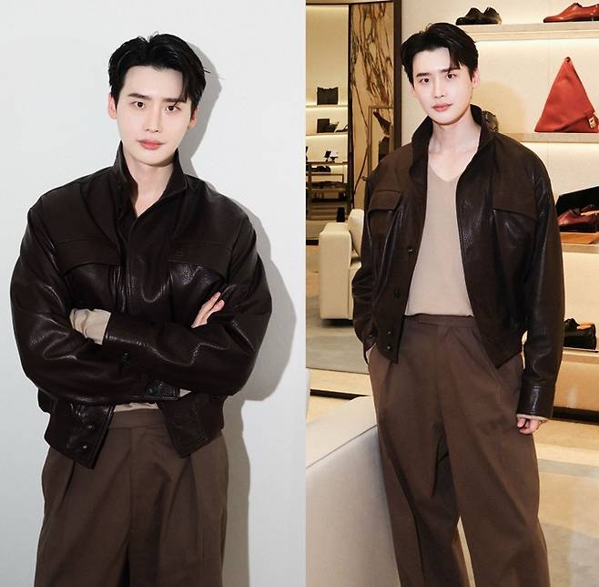 이날 이종석은 그레이니한 질감이 매력적인 레더 블루종과 업타운 무드의 레귤러 핏 트라우저를 착용해 세련된 봄 스타일의 댄디룩을 완성했다.