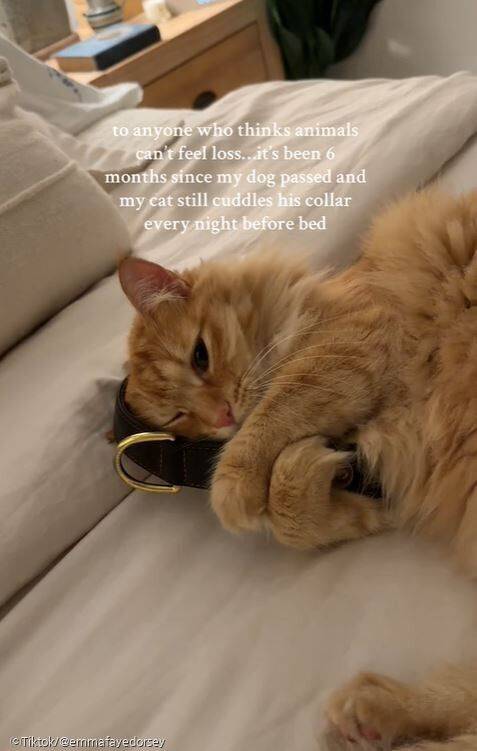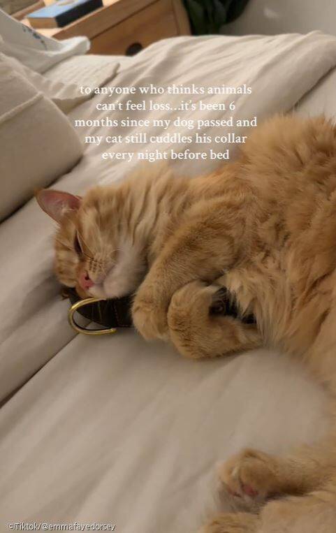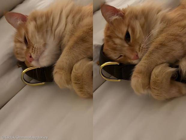 고양이의 집사가 지난달 28일 틱톡 계정(@emmafayedorsey)에 게재한 영상은 무언가를 껴안고 있는 고양이를 보여줍니다.