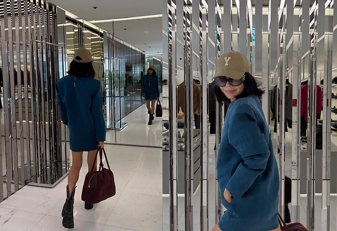 그녀는 최근 자신의 소셜 미디어에 "쇼핑~"이라는 짧은 글과 함께 여러 장의 사진을 공개했습니다. 공개된 사진 속 그녀는 넉넉한 핏의 롱 데님 원피스에 베이지색 볼캡을 매치해 시선을 사로잡았습니다.