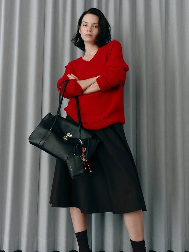 주력 제품은 ‘발롱백’과 ‘무스백’으로, 가로로 길게 흐르는 실루엣에 브랜드 시그니처 키 장식을 더해 포인트를 줬다.